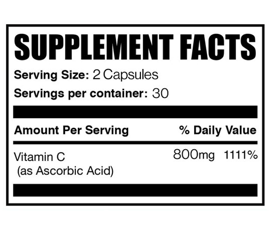 Ingredients For Vitamin C Capsules (60 Capsules)